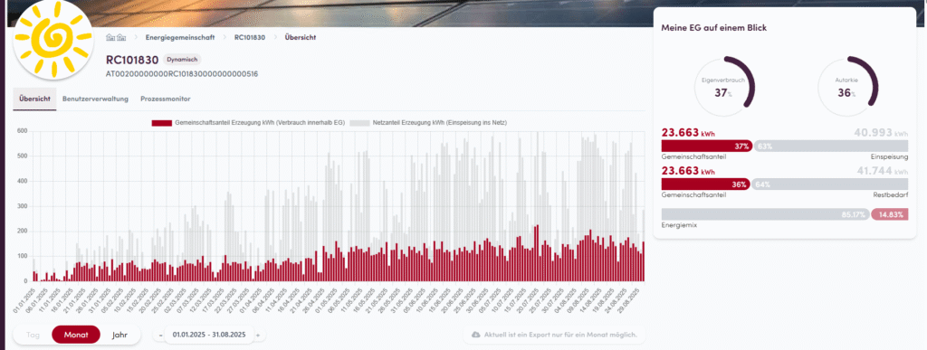 Es konnten neue Mitglieder geworben werden, wir stehen aktuell bei knapp über 60 Zählpunkten. Ab 50 Zählpunkten würde uns vom EDA-Portal ein unverhältnismäßig hoher Verwaltungsbetrag verrechnet werden.
