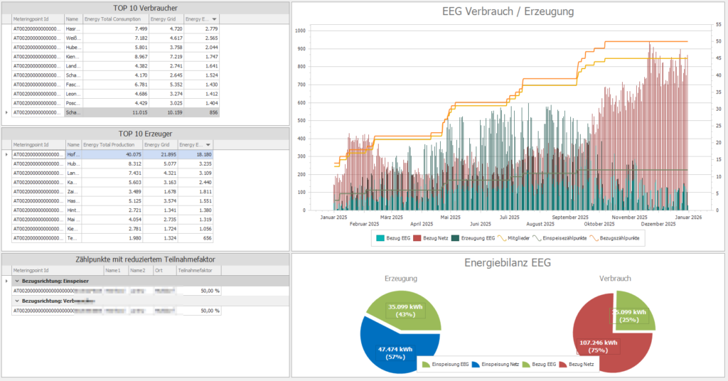 Und hier die aktuelle Statistik der EEG Yspertal für das Jahr 2025 von Jänner bis Oktober: